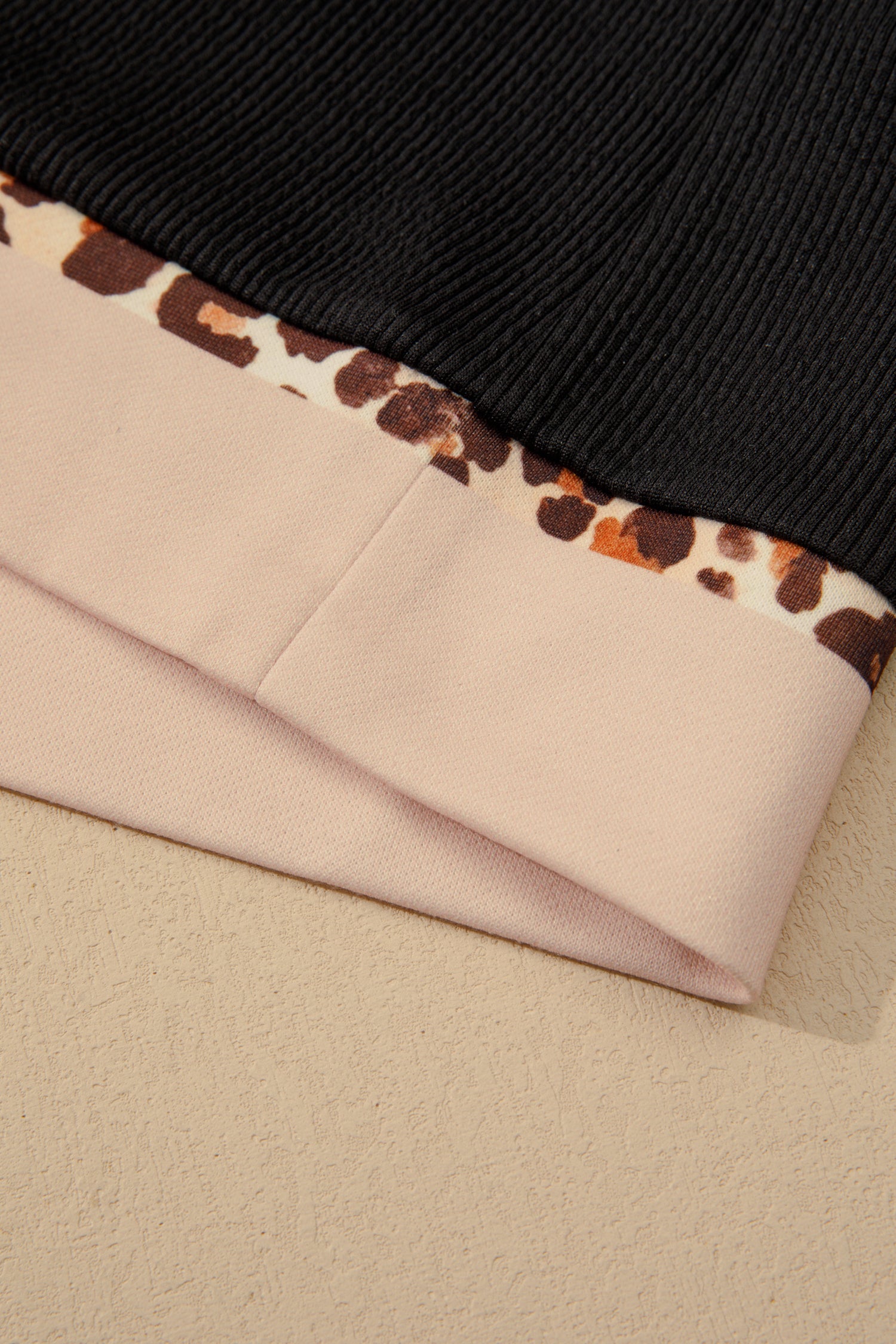 Black Contrast Color Block Leopard Trim Plus Size Ribbed Dress