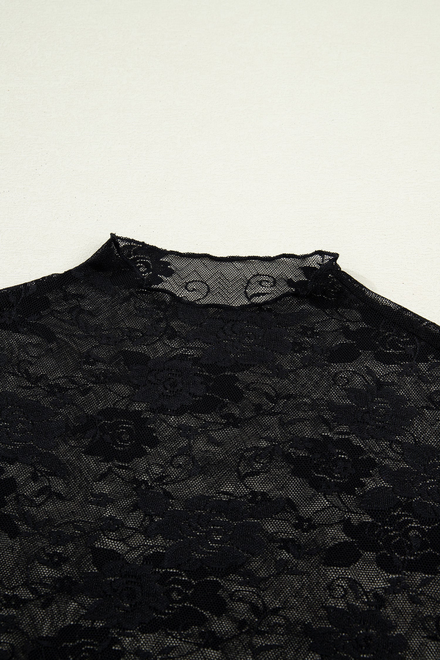 Black Floral Lace Mesh Short Sleeve Sheer Top