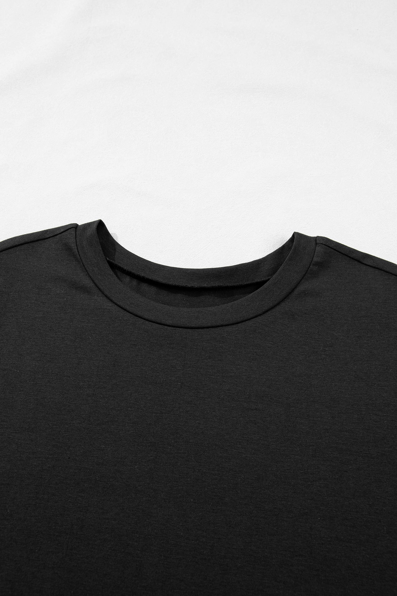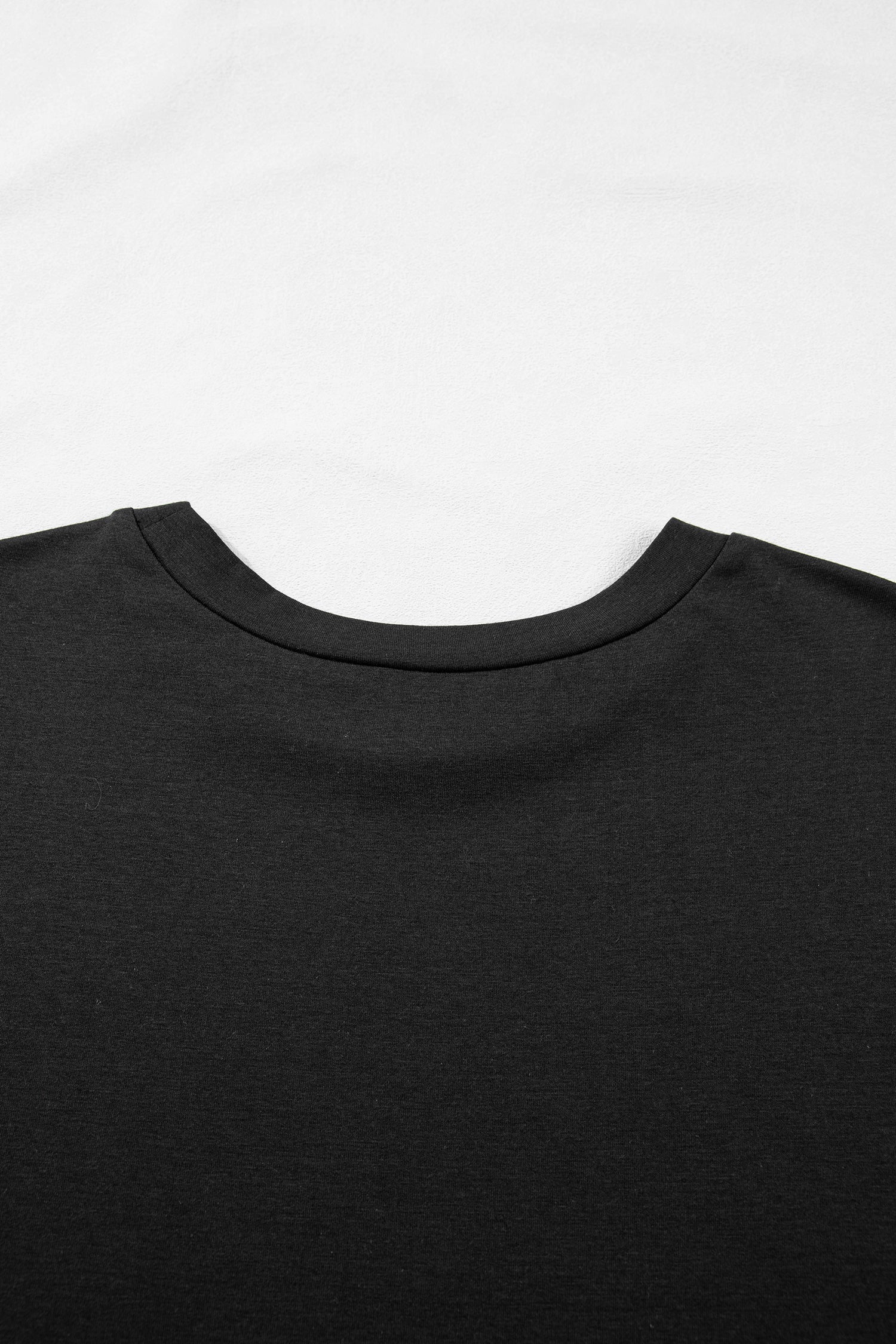 Black Plus Size Lace Hem Patchwork T Shirt Midi Dress