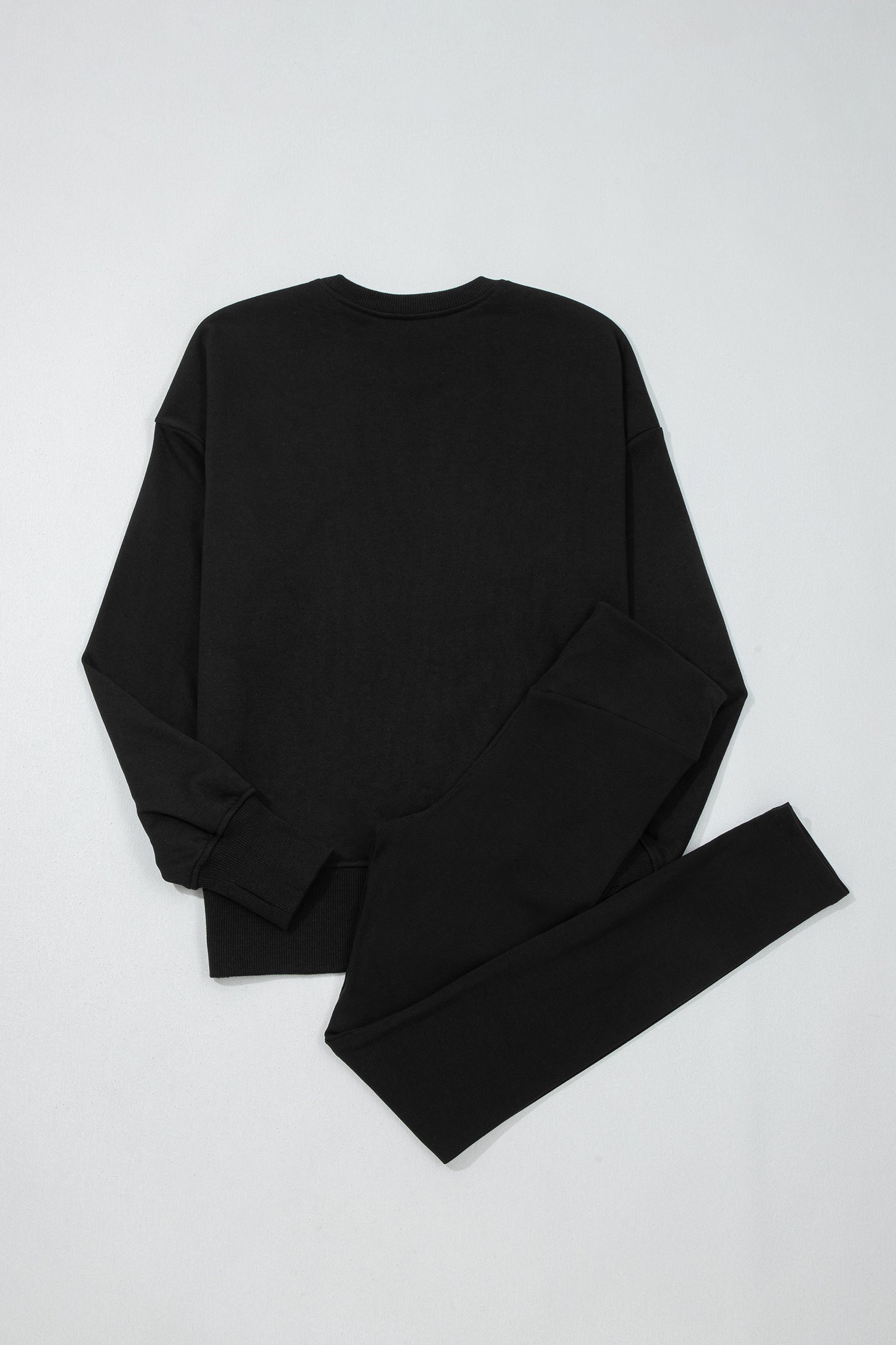 Black Solid Color Oversize Slit Sweatshirt Ribbed Leggings 2pcs Set