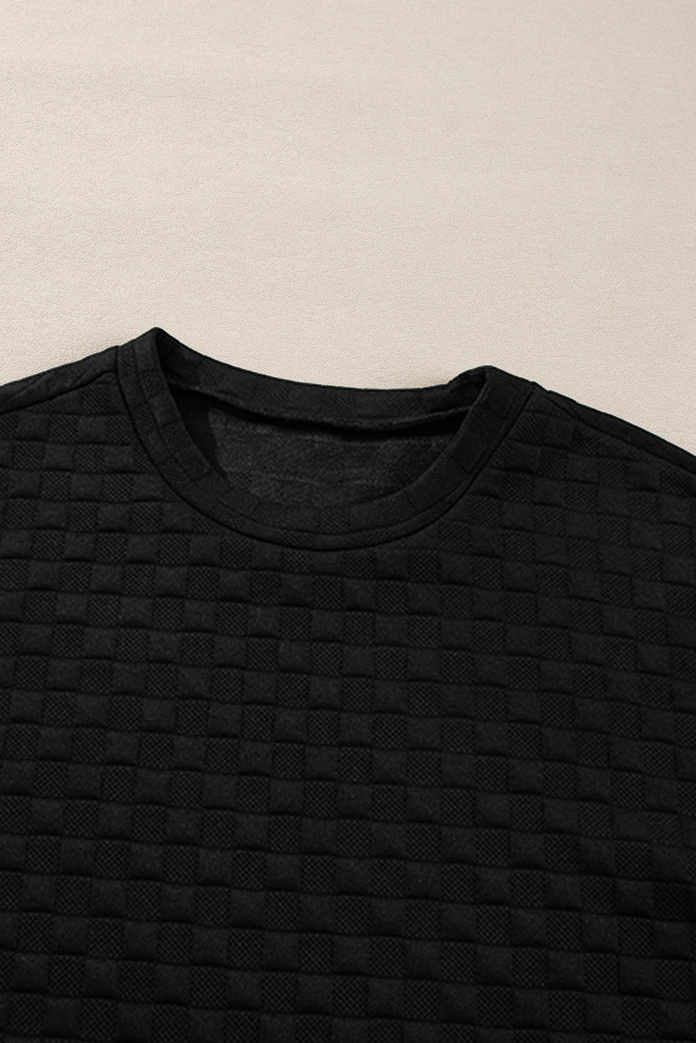 Checkered Textured Split Pullover Top and Pants Set