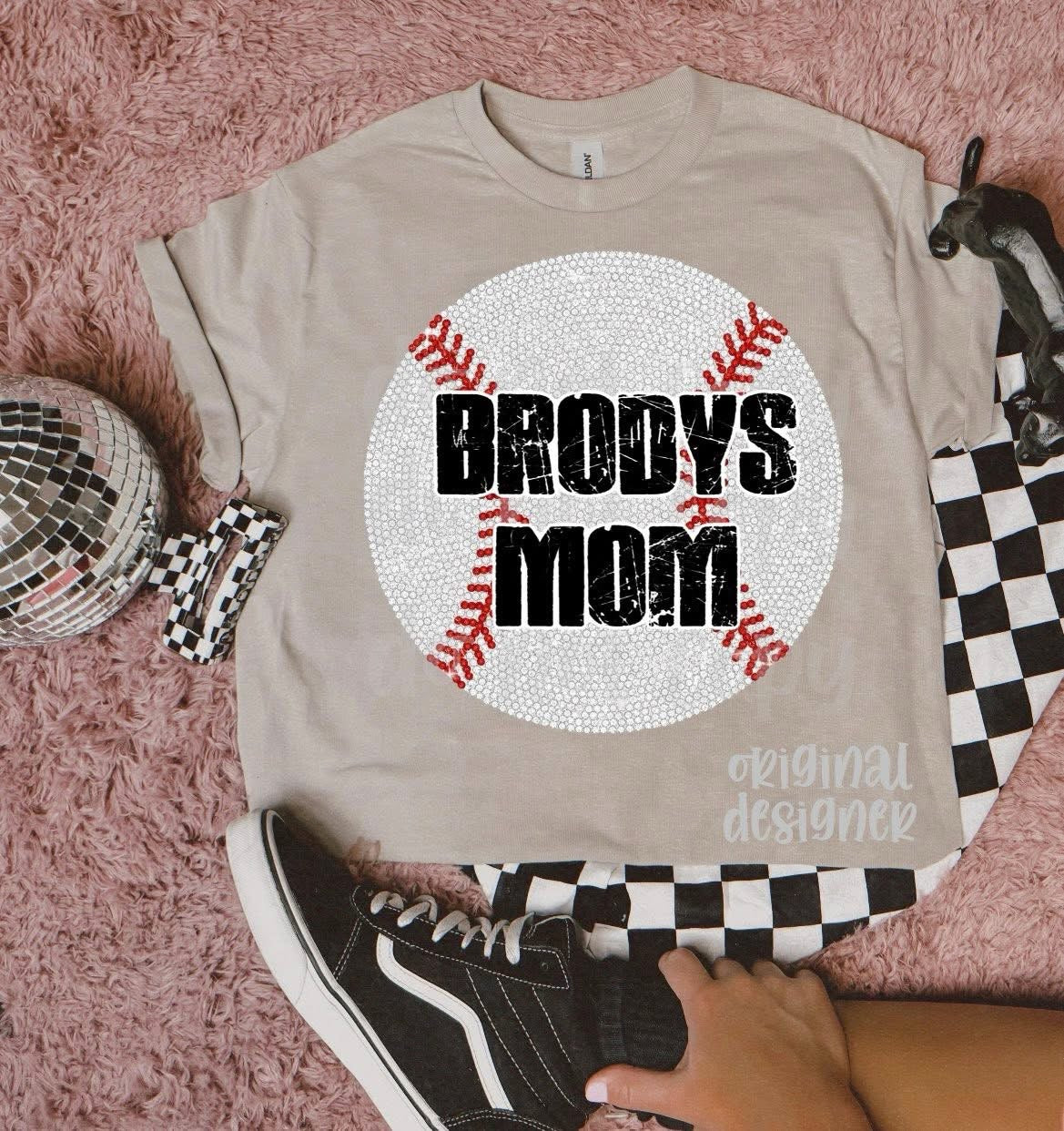 These are faux sequin baseball DTF printed tees with any customization of your choice!
