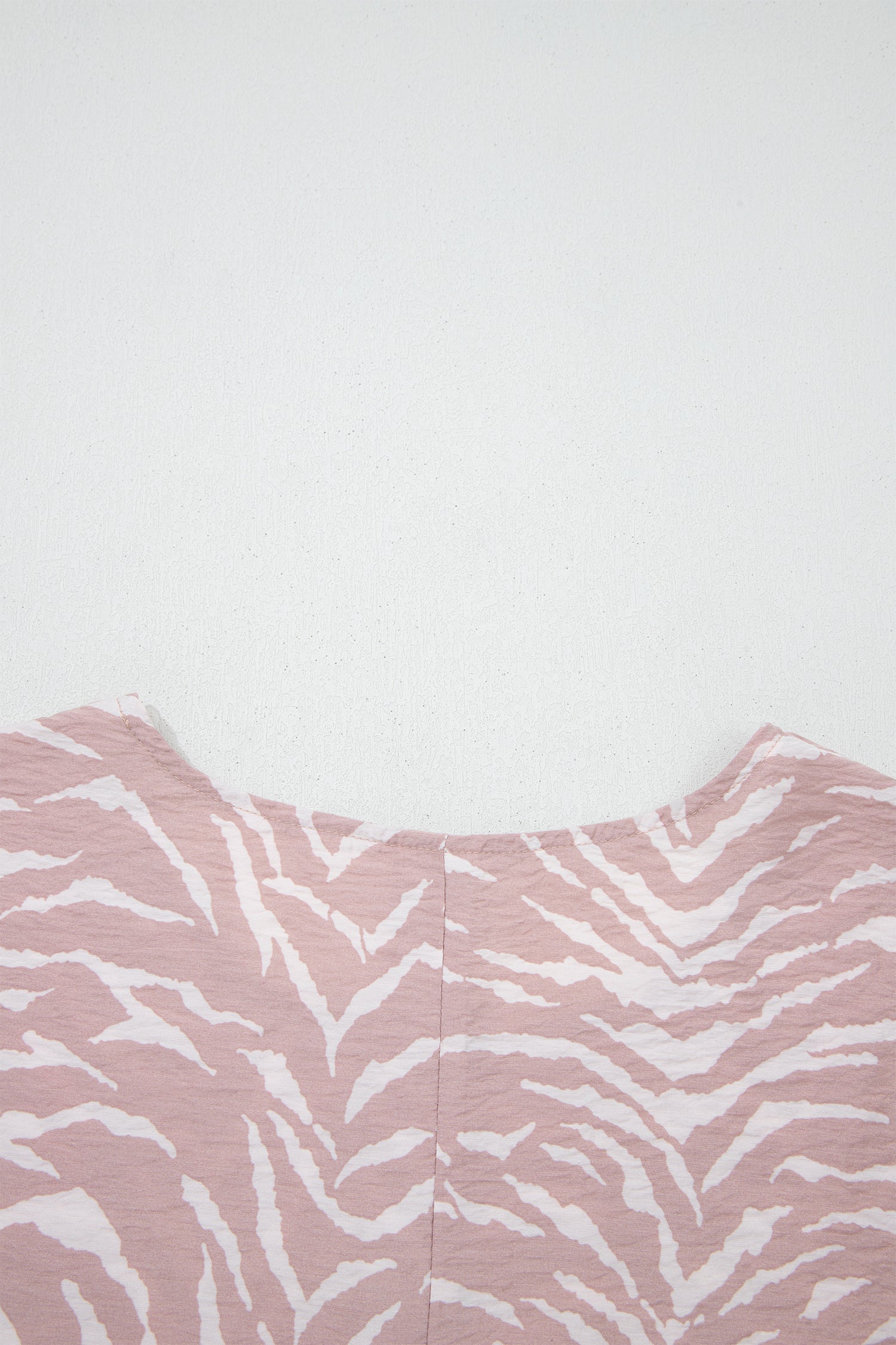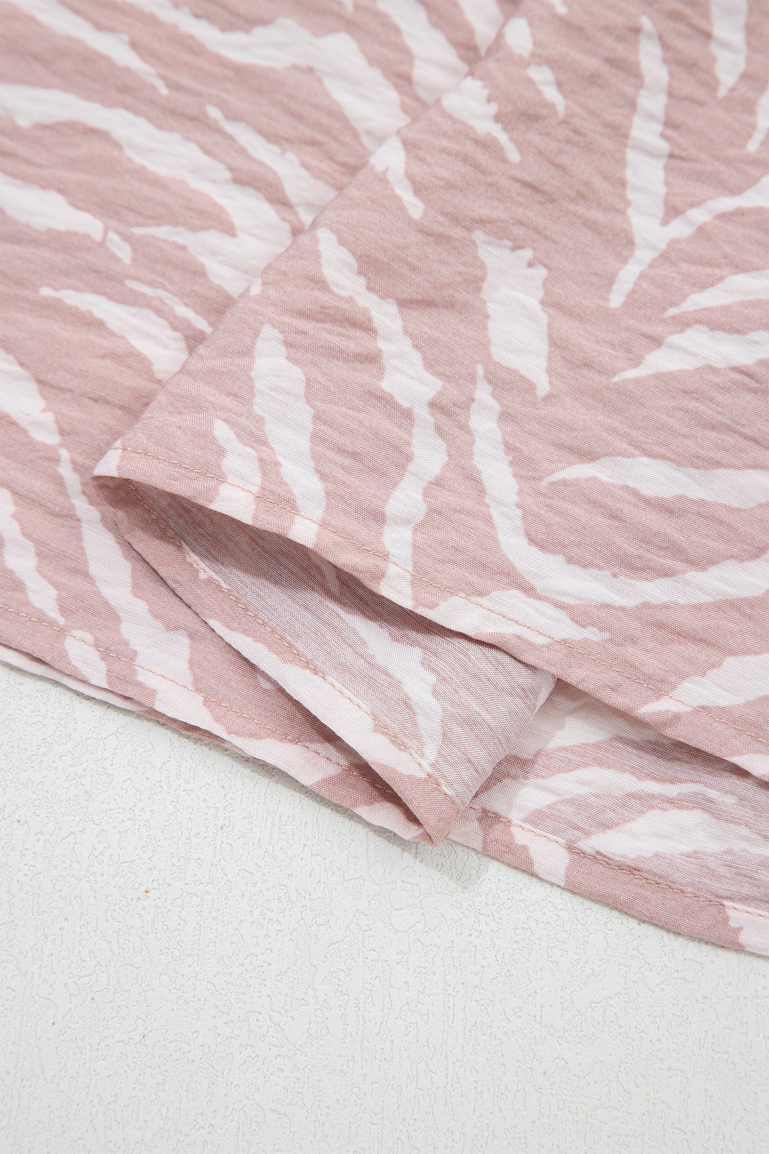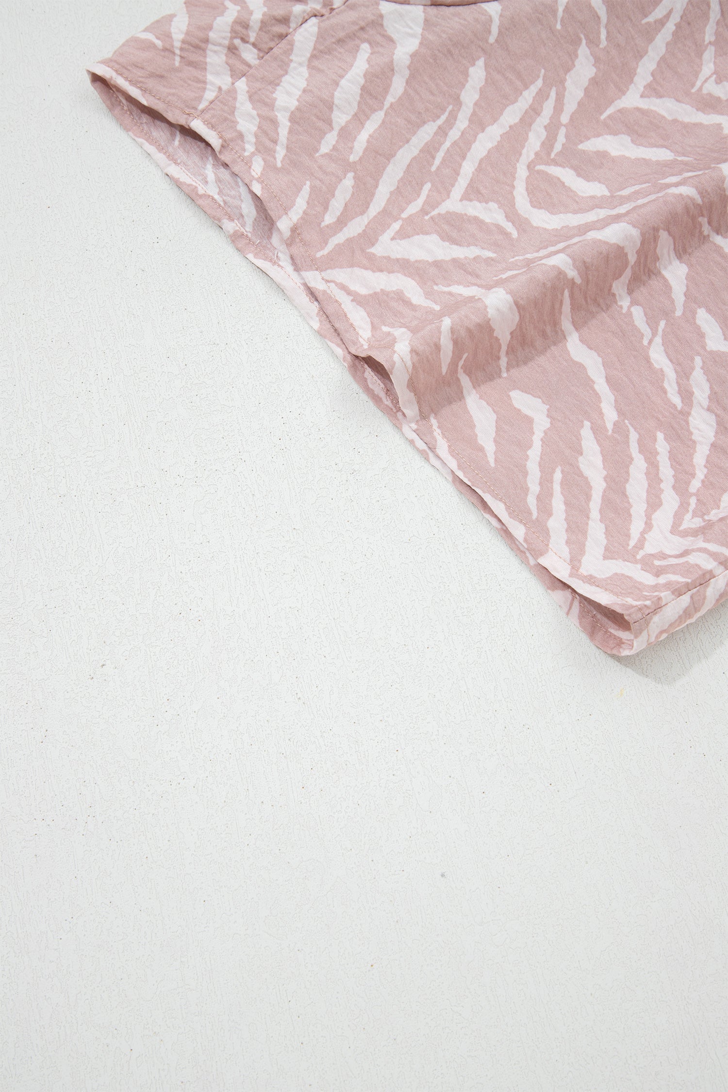 Khaki Abstract Print Cuffed Short Sleeve Loose Top Short Set