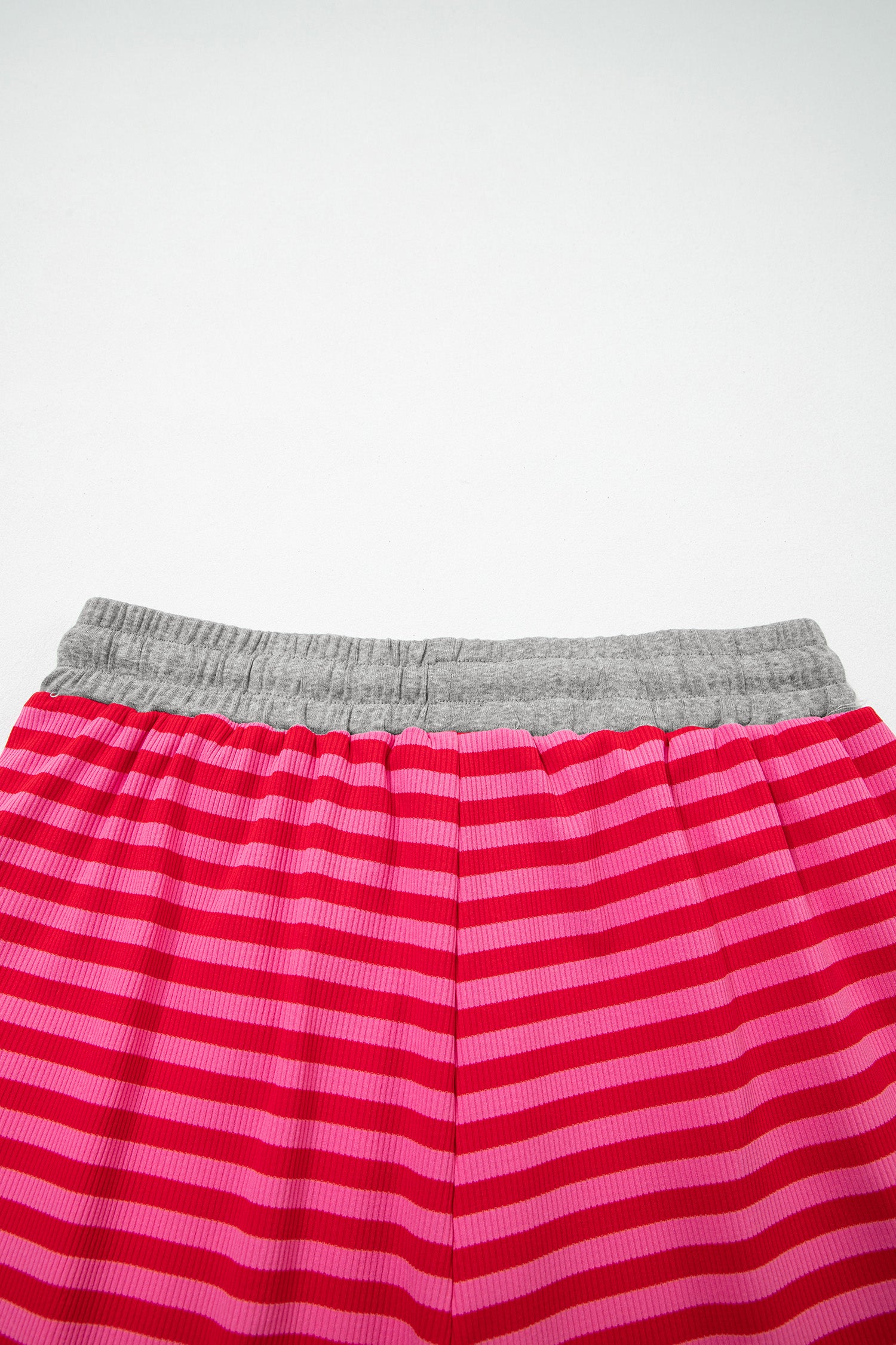 Rose Stripe Contrast Elastic Waist Casual Ribbed Shorts