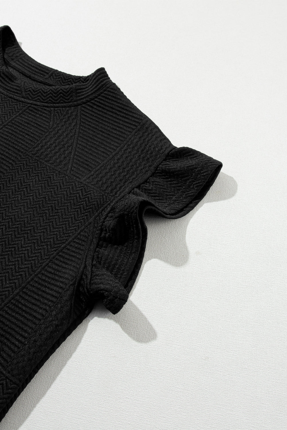 Unleash your inner fashionista with our Skobeloff Textured Ruffle Split Top and Drawstring Shorts set! Designed for ultimate comfort, this two-piece ensemble features a quilted fabric, stylish ruffled shoulder top, and trendy drawstring shorts. Perfect for any casual occasion, these pieces are versatile and can be mixed and matched with other closet staples for endless outfit options. Upgrade your wardrobe with this must-have set!"