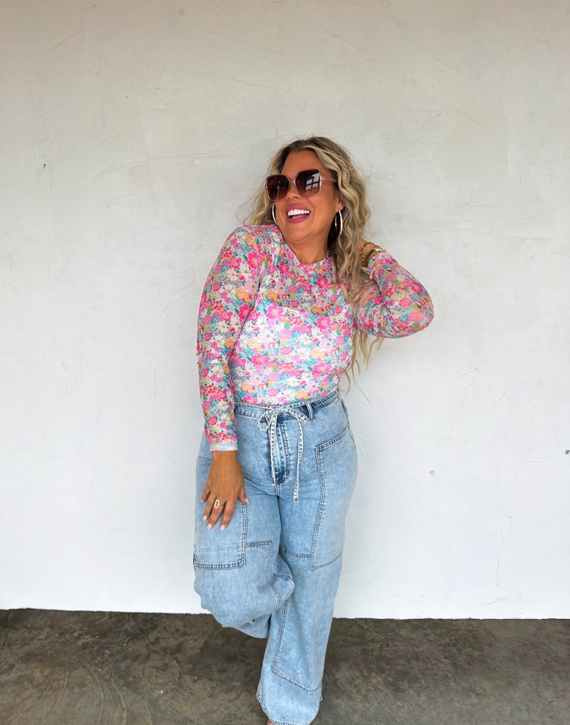 SPRING PRINTS ARE HERE!! Super cute for layering, this sultry stretchy mesh print long-sleeve top features a totally sheer design. Perfect worn alone or paired under your favorite cardigan, vest or sweater! Crew neck and thumbhole details.