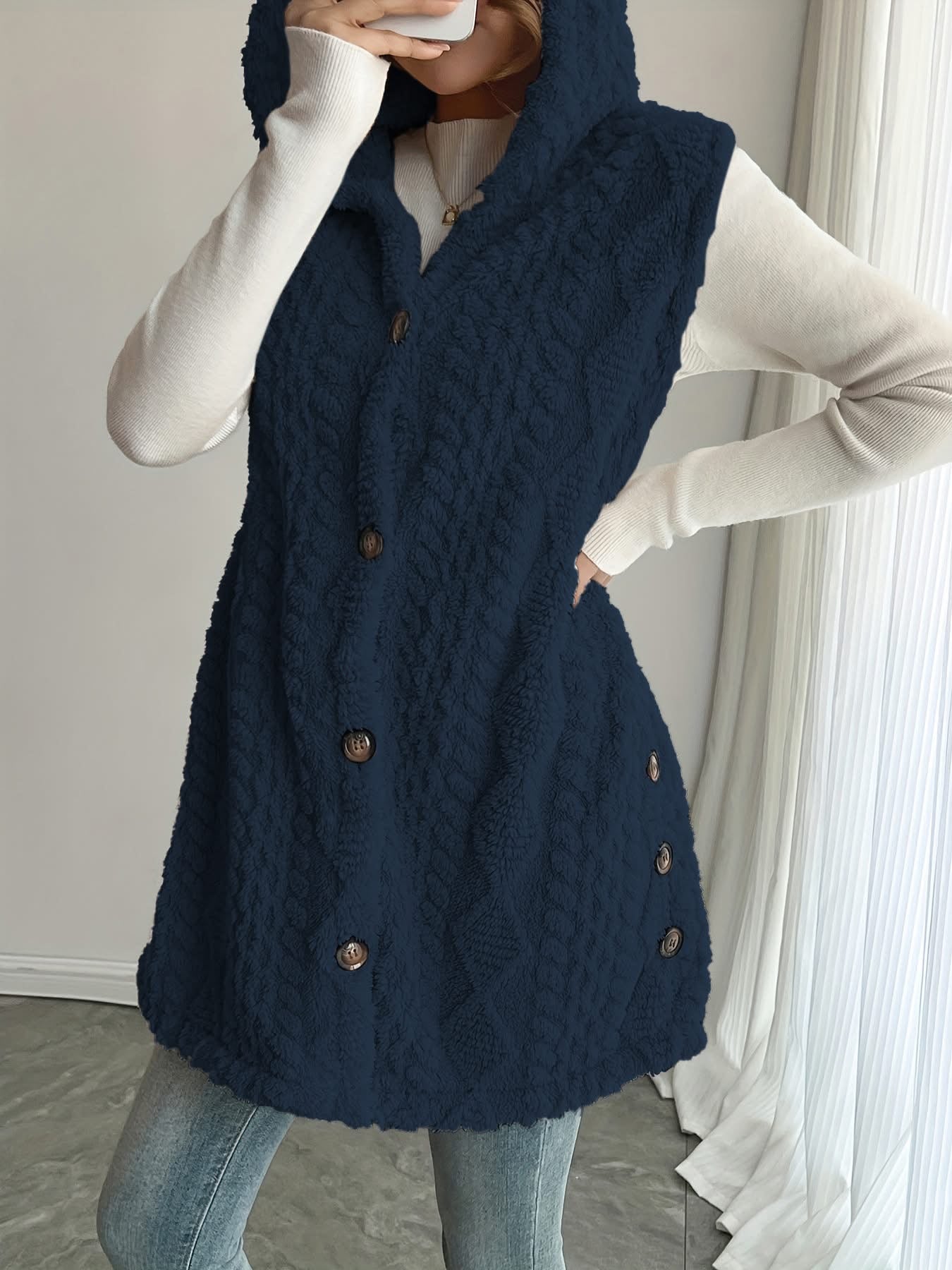 Wrap yourself in cozy charm with our adorable Teddy Bear Vest! Crafted from soft polyester, this playful piece features classic button closures and comes in 8 delightful colors to match your mood. Whether you're layering for warmth or adding a whimsical touch to your outfit, this vest brings instant personality to any look. Perfect for snuggling up in style.