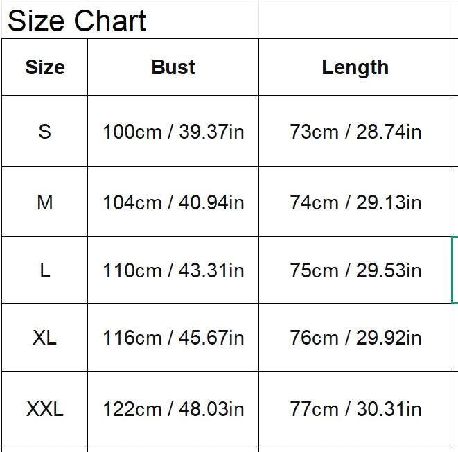 Sizes: S, M, L, XL, 2XL