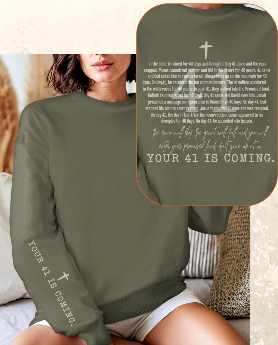 Embrace the journey of transformation with "Your 41 is Coming." This spiritual wear, available in short sleeves, long sleeves, or a cozy sweatshirt, reminds you that brighter days are ahead after life's storms. Whether you’re stepping out or snuggling in, let it inspire hope and resilience in your everyday life!